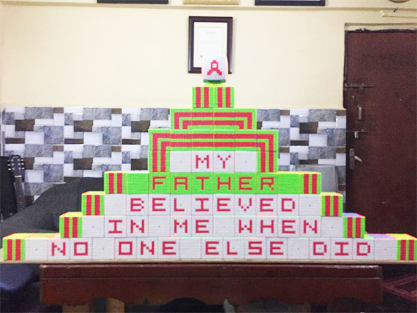 The only child in the world to make alphabets blindfolded on Rubik's cube.